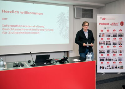 Mit über 50 Teilnehmern fand am 14. Oktober 2025, in der zt:Kammer, eine äußerst gut besuchte Informationsveranstaltung zur Eintragung in die Liste der Gerichtssachverständigen statt. Die Veranstaltung stieß auf sehr positive Resonanz und bot den Gästen wertvolle Einblicke in Voraussetzungen, Ablauf und Vorbereitung zur Sachverständigenprüfung.